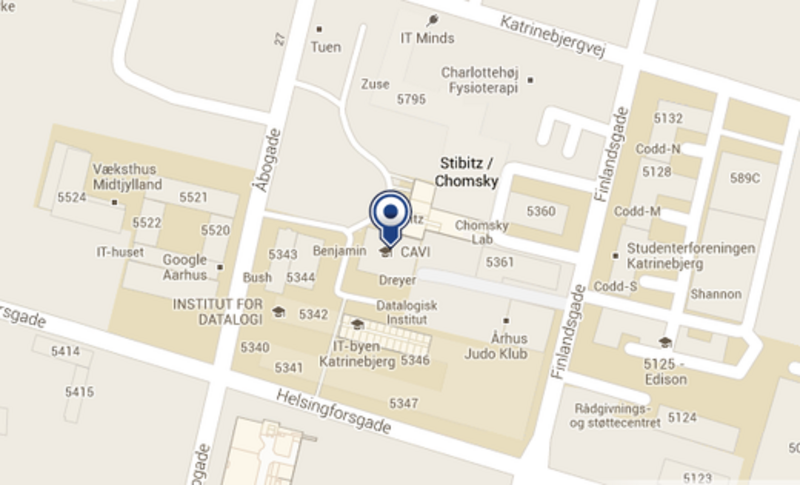 Google Maps does not reflect the "D" in the address. Therefore it is important to state that CAVI is found next to the parking lot behind the road facade which can be entered by vehicle between Aabogade 34 and Aabogade 36.