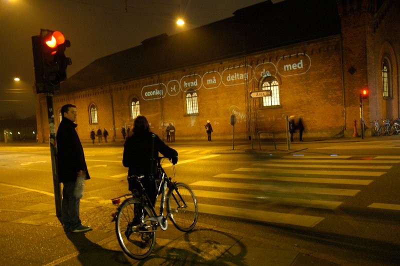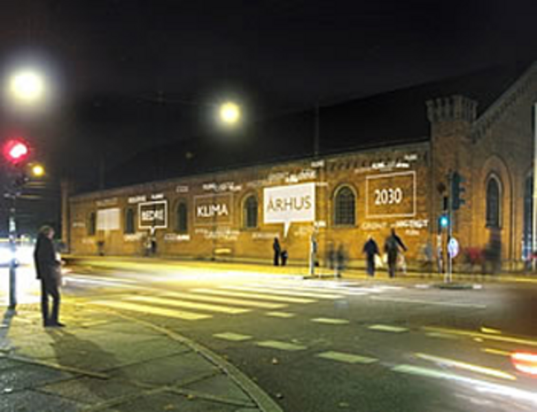 During Aarhus University's climate conference Beyond Kyoto (March 5–7, 2009), citizens of Aarhus showed their support for large-scale climate action through Climate on the Wall - an interactive installation that transformed Ridehuset, a prominent city-center building, into a dynamic backdrop for climate statements.