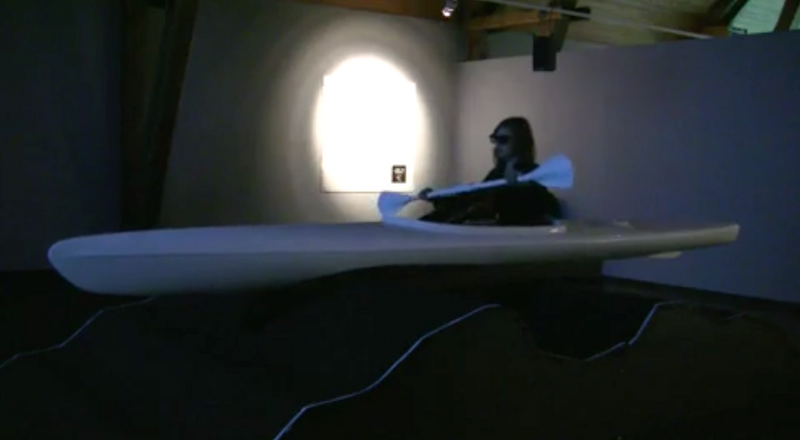 Hyperkinetic Kayak was an interactive installation created by artist Jette Gejl, programmer Peter Møller Nielsen, and musician Rasmus Lunding, in collaboration with CAVI. The work combined a physical kayak, a virtual 3D landscape simulating an Arctic ice sea, and a live data feed of air temperatures around Greenland provided by the Greenland Meteorological Institute.