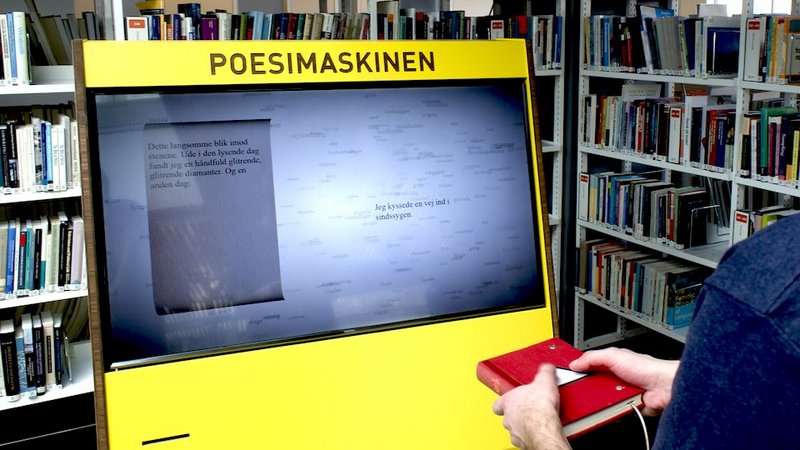 Five yellow Poetrymachines have toured Danish libraries and public venues for more than six years. In 2024, Poetrymachines have found permanent homes at CAVI and libraries in Thy, Frederikshavn, and Hjørring.