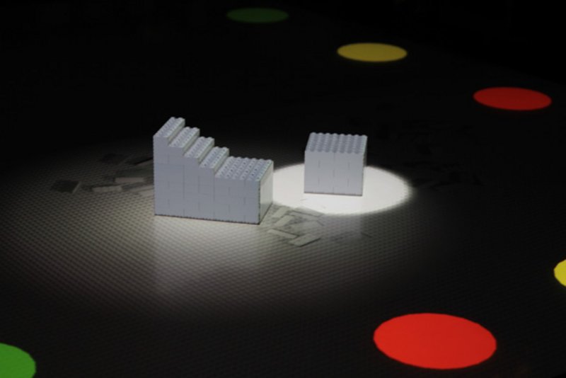 Projected Play No. 2 was further investigations into playfull content with projection mapping using LEGO bricks as both virtual and physical, tangible elements.